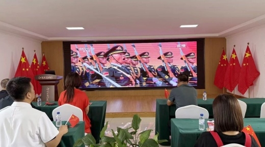 会议室内,当一个个受阅方阵英姿飒爽地经过屏幕,特别是看到军容整齐、装备精良的中国军队展示出的强大实力,那种民族自豪感油然而生,在场的每个人无不为国家之强大动容。